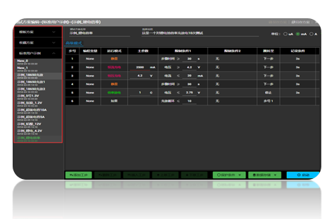 一、概述(主設(shè)置方案界面簡介)工作方案腳本的編程性能的強弱是整個電池測試系統(tǒng)非常重要的指標。1.LANBTS電池測試系統(tǒng)允許用戶對每個通道或者是多個通道同時或是分別設(shè)定多至65500個“工作步驟”的過程編程。2. 每個“工作步驟”由變量操作、工作模式、結(jié)束限制條件1、結(jié)束限制條件2、以及跳 轉(zhuǎn)(跳轉(zhuǎn)至)、記錄條件等五個部分組成。3. 變量操作幫助用戶操作(用戶)自定義的變量來實現(xiàn)多功能的測試方案編輯;4. 工作模式是...