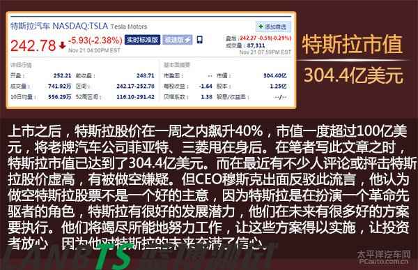 可以說,這三筆錢把Tesla從懸崖邊拉了回來。在熬過這段艱難的時(shí)光后,Tesla的資金情況逐漸好轉(zhuǎn)。2010年特斯拉在納斯達(dá)克上市,融資額達(dá)2.26億美元。開盤當(dāng)日,穆斯克也在帳面上力挽狂瀾地賺了6億3千萬美元。而上市之后,特斯拉股價(jià)在一周之內(nèi)飆升40%,市值一度超過100億美元,將老牌汽車公司菲亞特、三菱甩在身后。