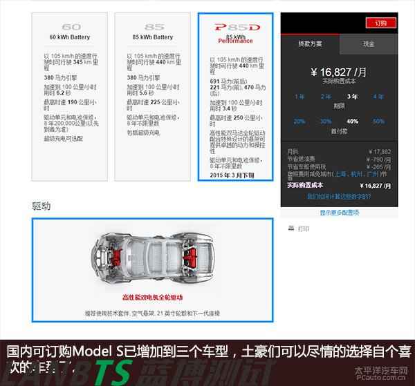 5. 采用85kWh才有標(biāo)配(進(jìn)入中國的車型全部為85kWh)SuperCharging充滿80%只需45分鐘。(這種充電方式現(xiàn)在僅存在北美。而在未來,特斯拉首先會在北京至上海的高速沿線上建立這種超級充電站。)