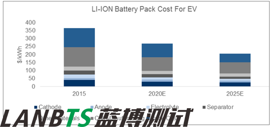 2015-2025,電動(dòng)汽車(chē)鋰電池Pack 單位成本將下降44